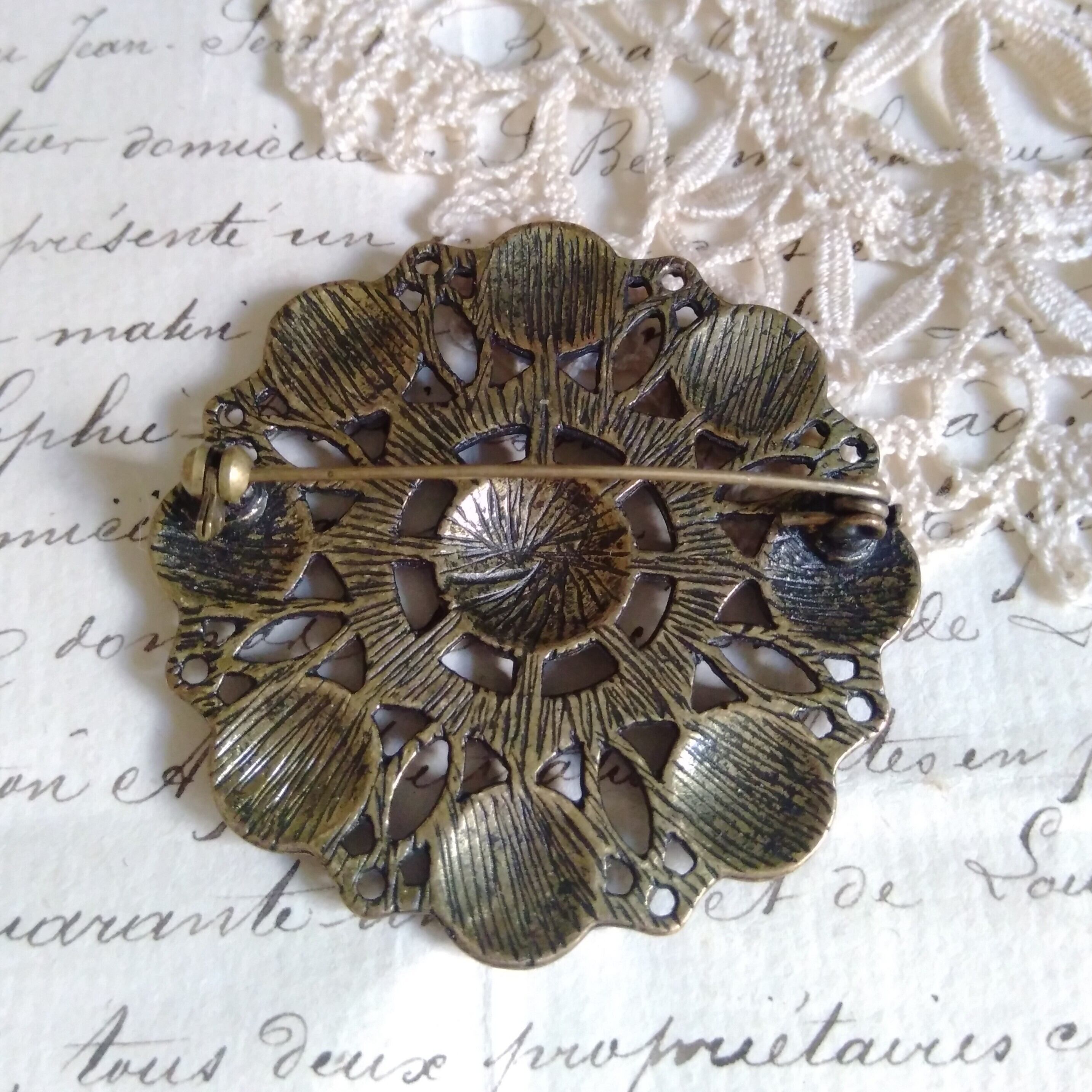 アンティークゴールドのお色味の素敵なメタルブローチ。