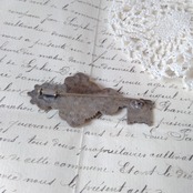 鍵モチーフにケルト風の細かい柄が施されたヴィンテージブローチ。