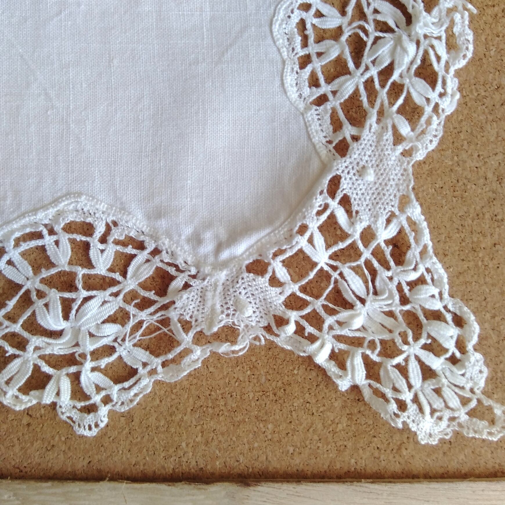 【24㎝×24.5㎝】アンティークレースハンカチ