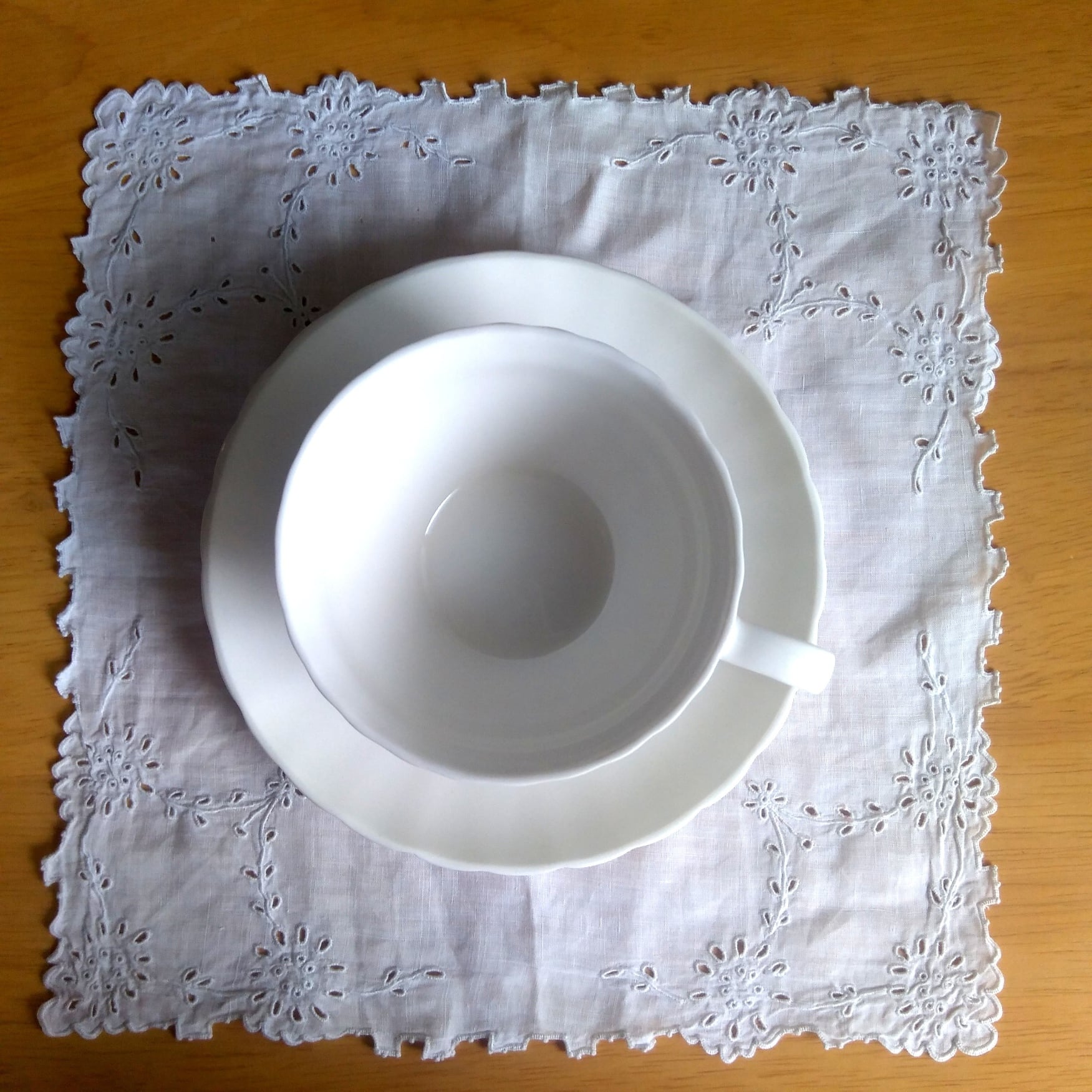 手刺繍と思われるカットワークが素敵です。