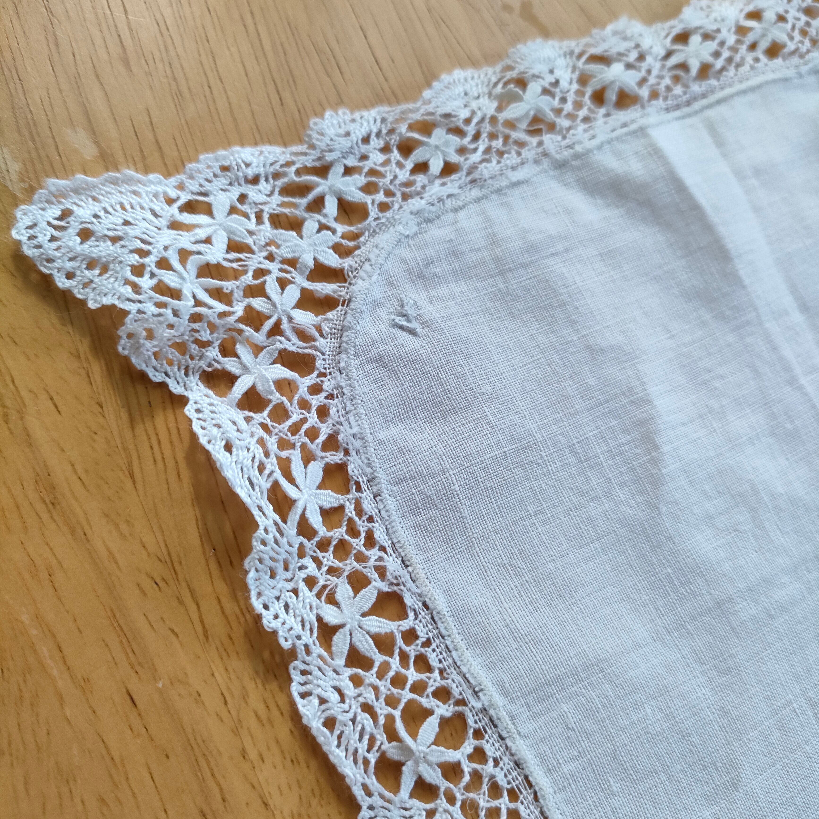 フランスの蚤の市で状態のよいアンティークハンカチが手に入りました。