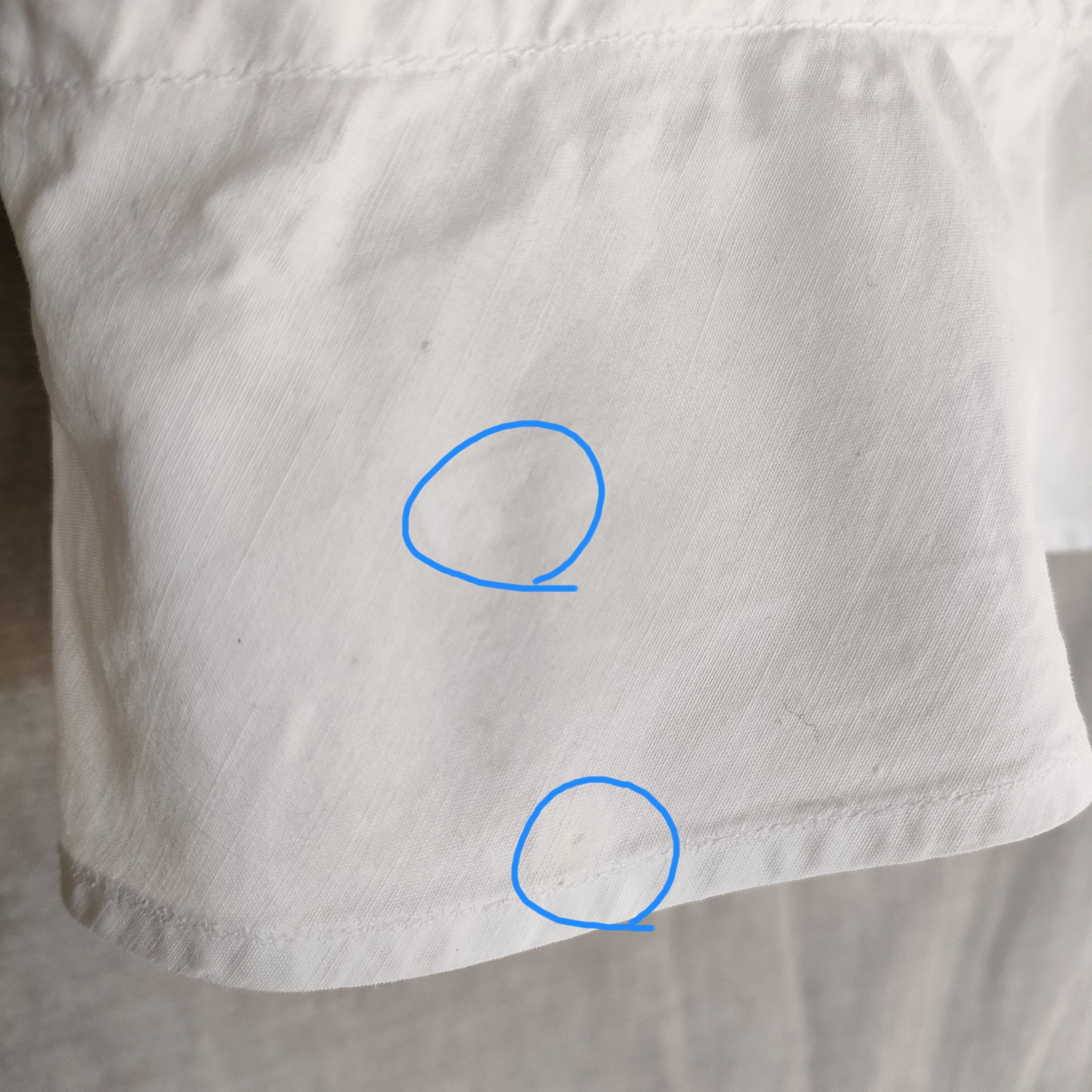 ・裾と右肩後ろに小さな穴(接着布による補修、写真7,8枚目)