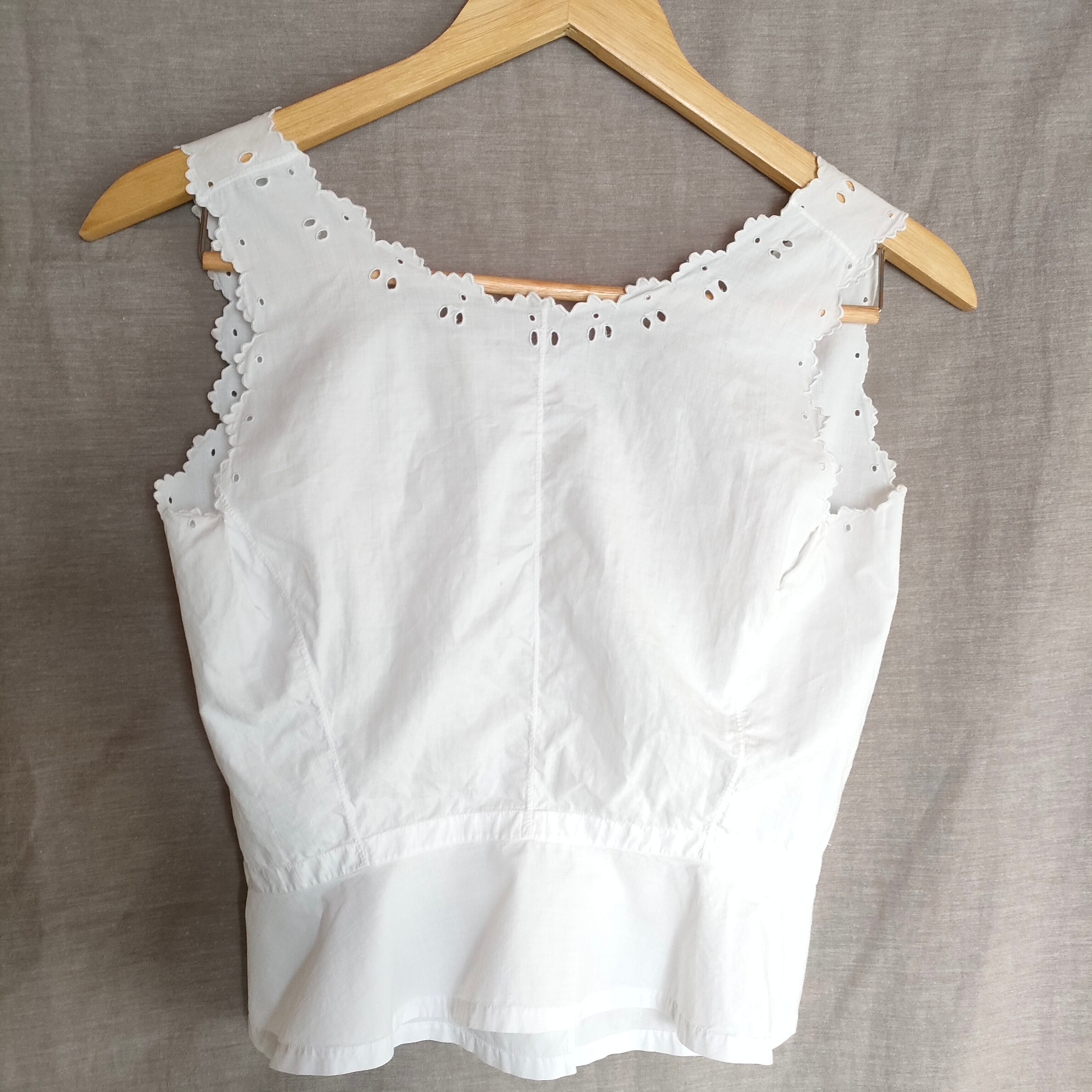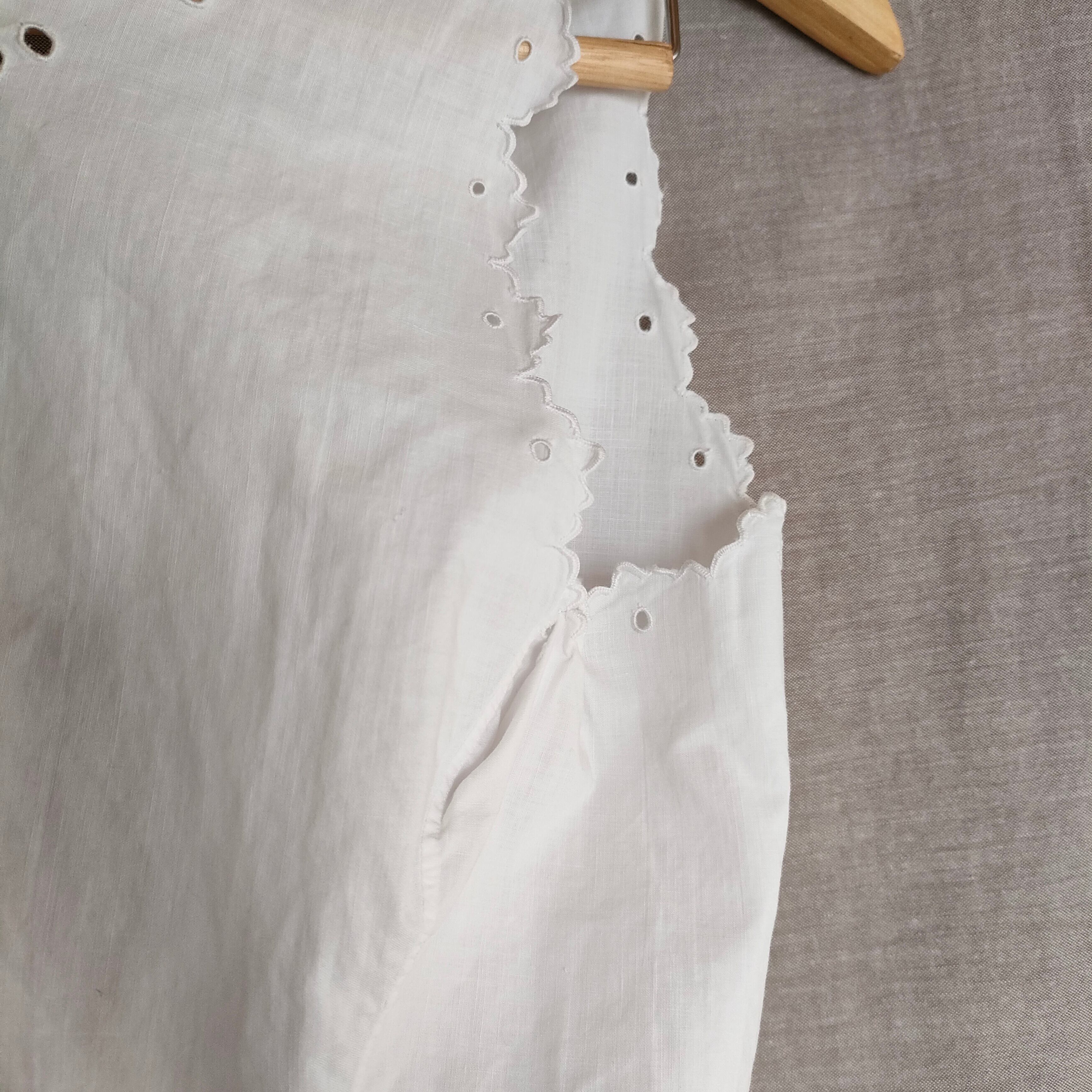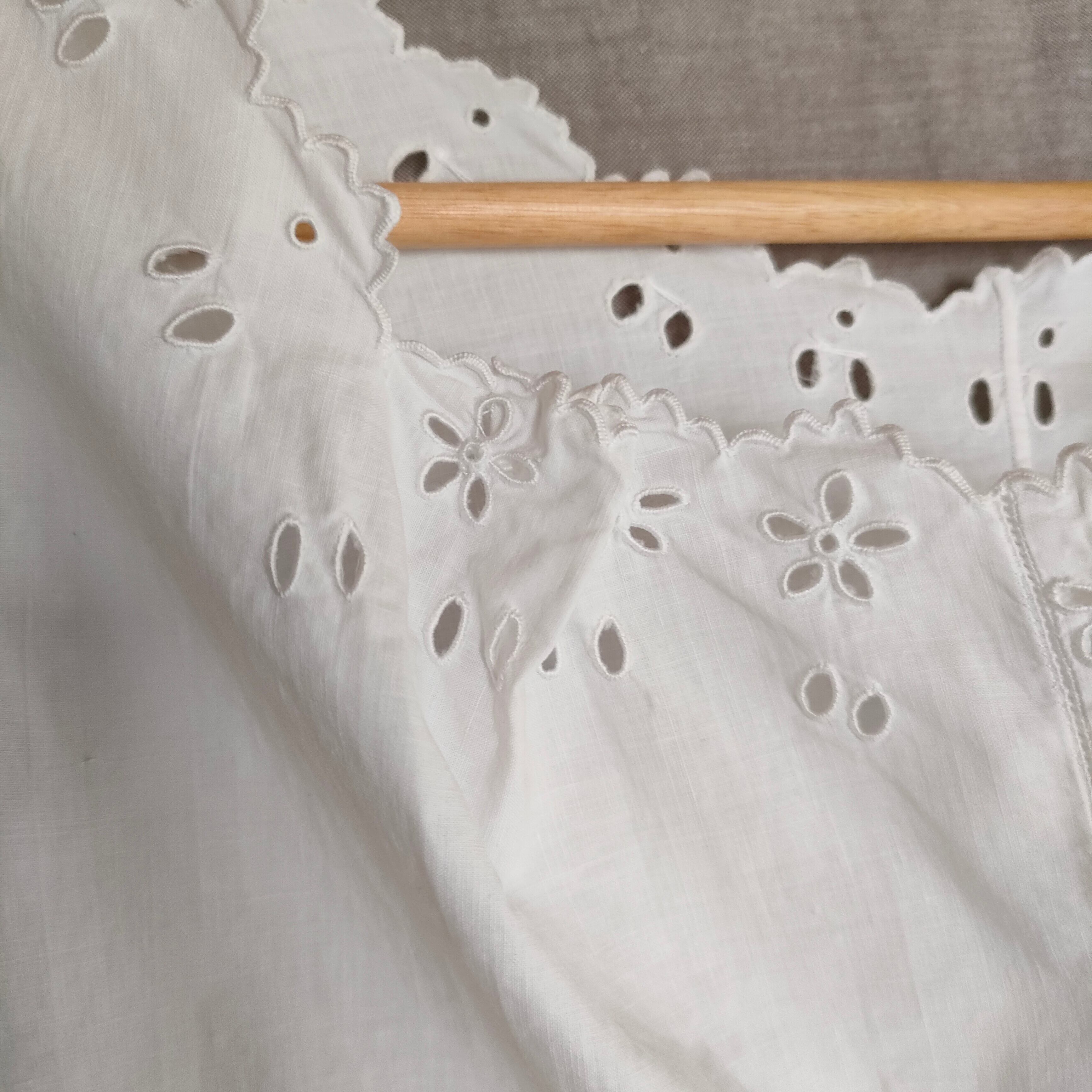 リボン通し穴付きアンティークコルセットカバー:カットワークレース、ピンタック、イニシャルGM